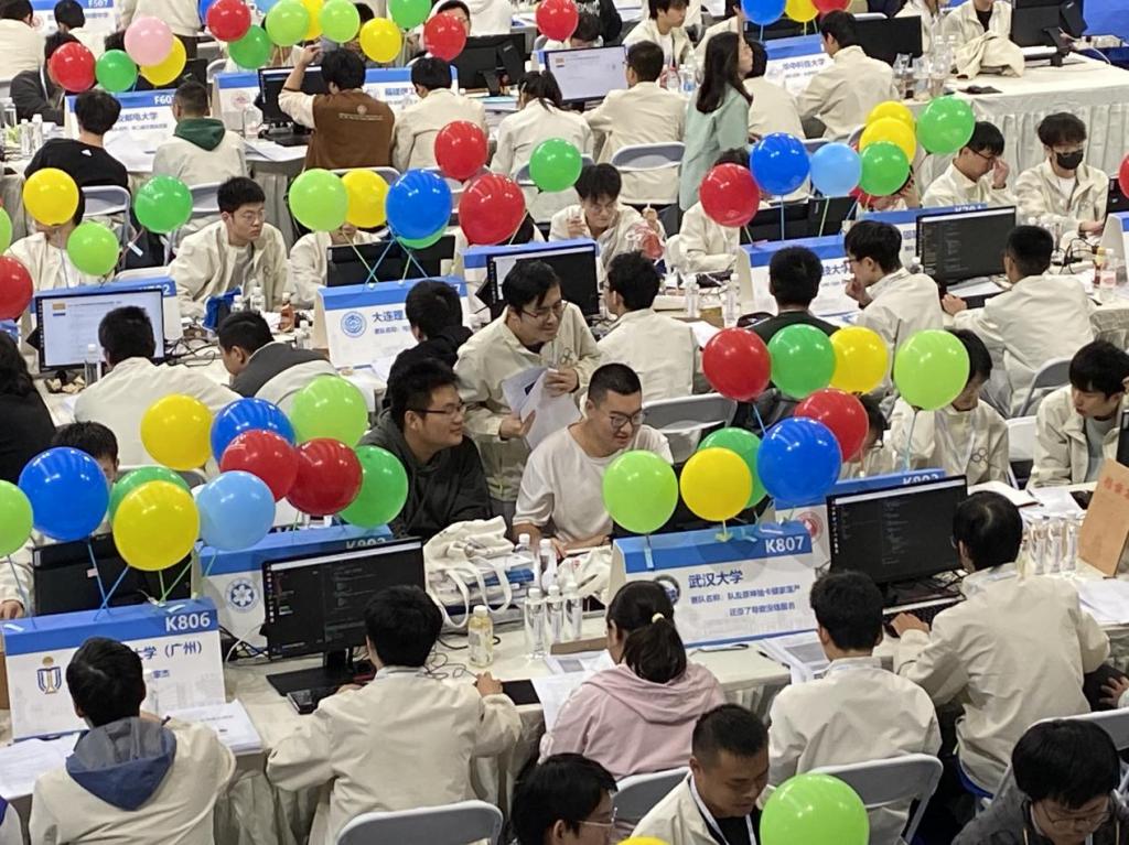 本次竞赛中,我校代表队与北京大学、中山大学、浙江大学、上海交通大学等全国高校的近300支代表队同台竞技。比赛过程中,各参赛队伍展现出极高的热情,随着答对题目数的气球不断增加,竞赛逐渐进入白热化阶段,我校计算机科学与技术学院代表队在场上沉着应战,积极思考讨论,通过三人的紧密合作解决了6道题,荣获铜牌,在参赛的190多所高校中排名第89,学院层级为第6名。